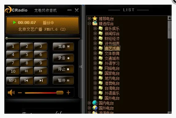 音乐、娱乐、社会新闻电台频道,这个软件不单是能收国外,同时国内中文电台,