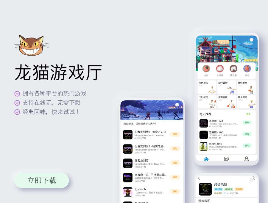 龙猫游戏厅,一个经典游戏聚集APP,包括FC、GBA、SFC、GB、PS、PSP等等平台的模拟器游戏,下载即玩无需等待~支持一建金手指无敌等代码,玩出新花样,赶紧下载回味一下你的童年吧