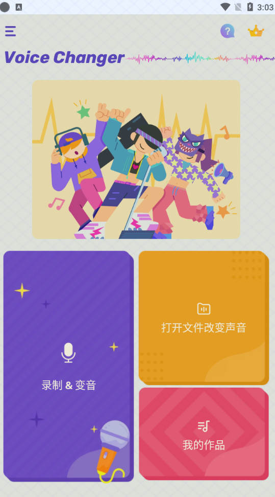一个有趣的变声器,可以将您的声音更改为另一种音效。它不仅可以在录音时改变声音,还可以通过从手机导入音频文件。所有声音都可以改变!