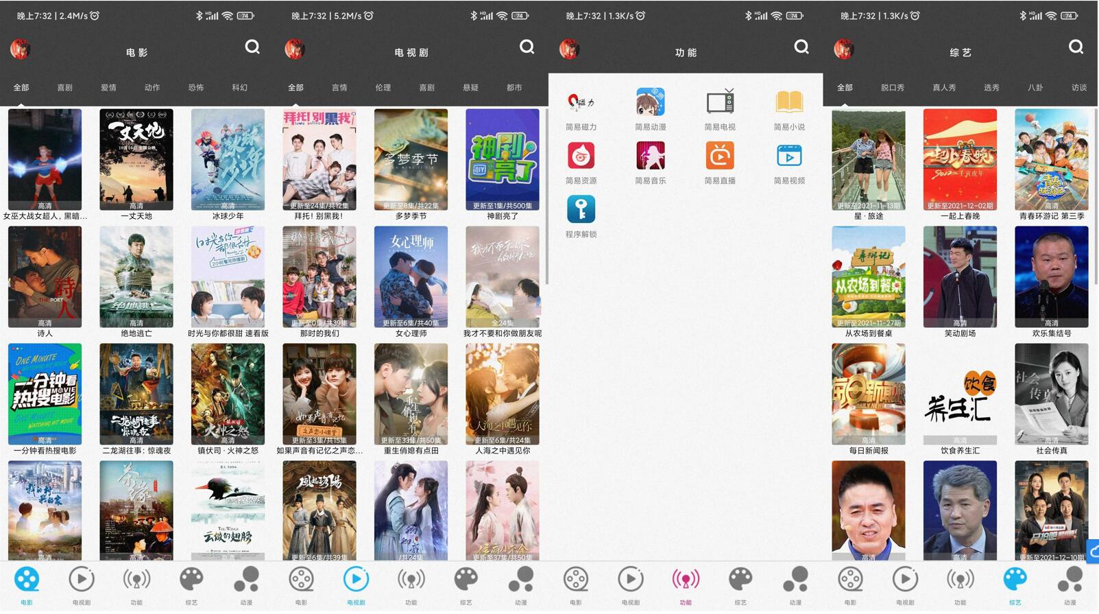 简易影视(包名:com.jyysxz.xyz)是一款手机端看影视的软件,这款软件非常优质,推荐大家使用,非常简单明了的列表、画质清晰,直播频道也比较多,还有音乐资源,甚至还有全网小说。。。 软件特点: 软件的影视资源非常丰富,更新快,新的旧的都有; 资源都是解析的正版平台的资源,画质极清晰,速度快; 无任何限制,点开即看