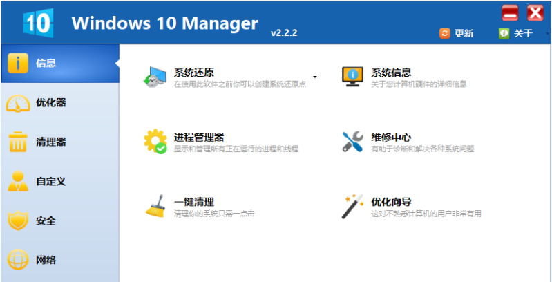 蓝奏网盘 蓝奏网盘 win10优化工具哪个好用?Windows 10 Manager绿色破解版是一款专业的win10系统管家,Windows 10 Manager中文版集系统优化、垃圾清理、自定义设置、系统安全、网络管理等功能于一体,Windows 10 Manager中文破解版包括了 40 多个不同的实用程序,让你的系统更加快速易用。