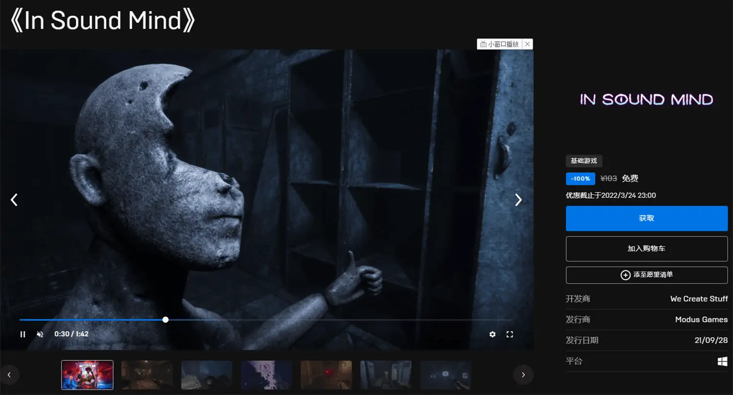 领取地址:https://store.epicgames.com/zh-CN/p/in-sound-mind