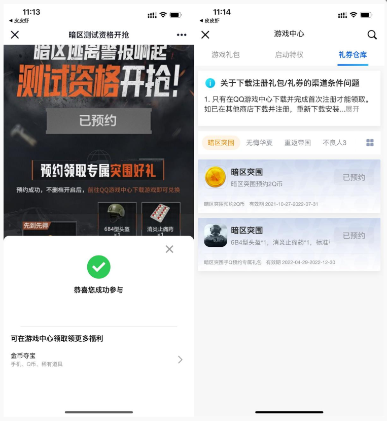 手机QQ打开地址->预约游戏->下拉领取2Q币卡券