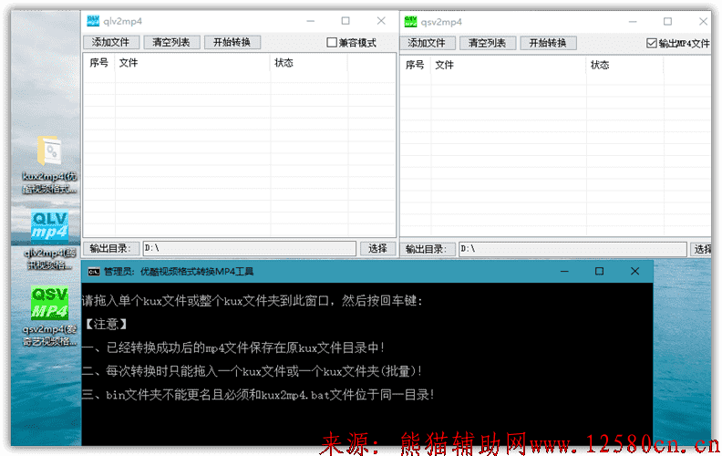 众所周知各大视频平台客户端都有各自加密的视频格式,比如优酷的KUX格式、爱奇艺的QSV格式和腾讯的QLV格式,且不说下载后不支持上传到其它平台,而且审核非常严格,这些视频加密格式转换其实不难。qlv2mp4,qsv2mp4 这2个是易语言写的会报毒,优酷视频格式KUX转MP4是利用ffmpeg命令行。