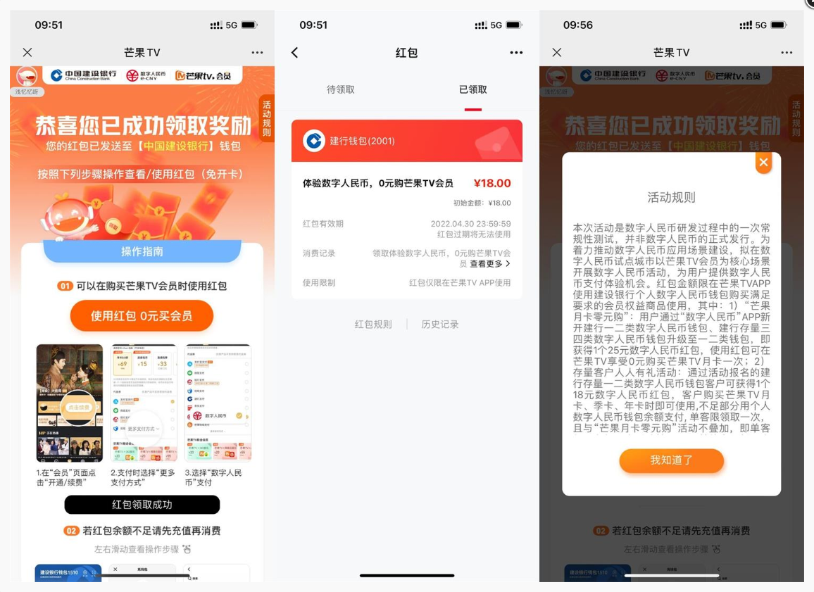 2、老用户领18元红包->根据页面提示在芒果TV中使用