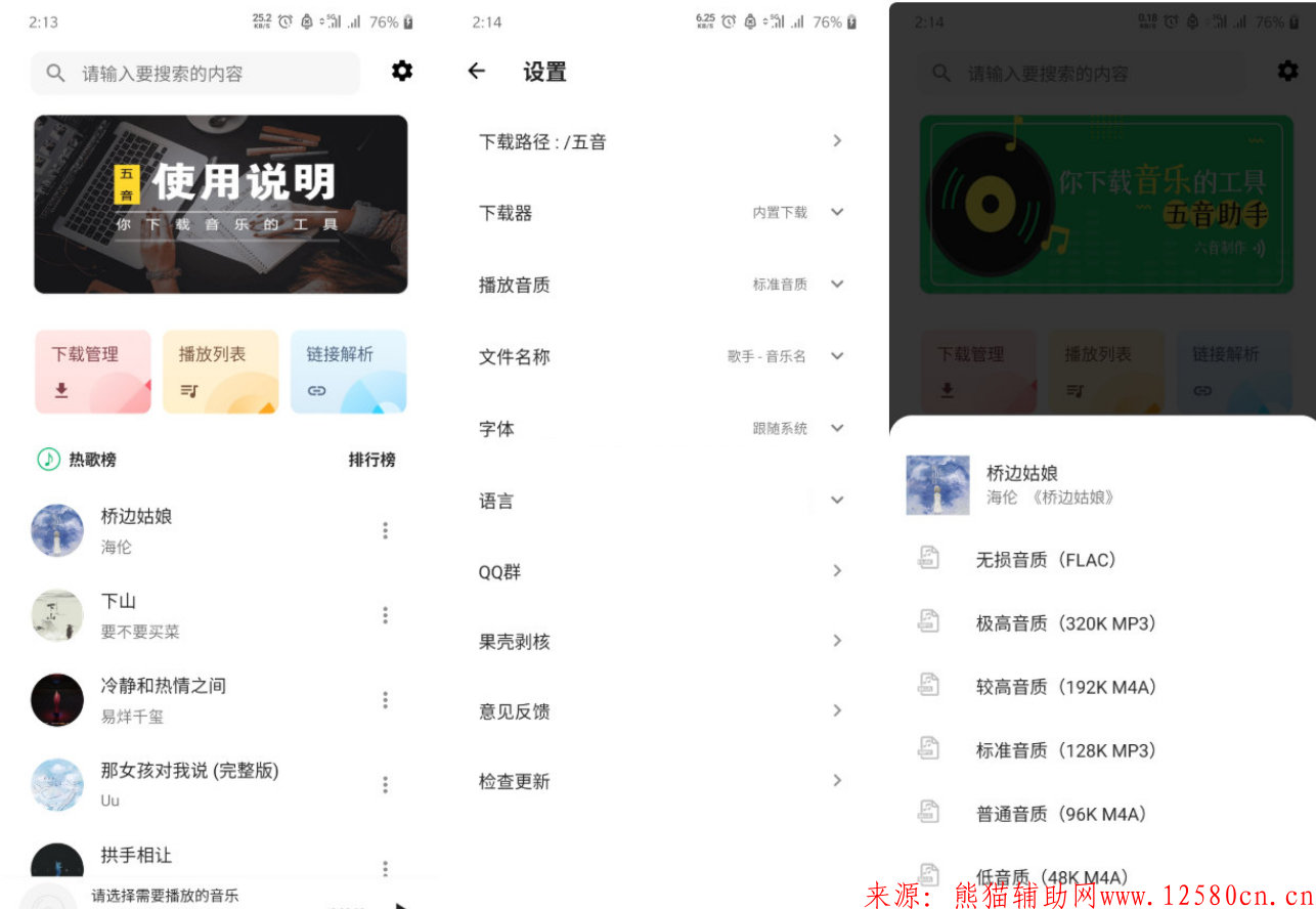 五音助手是一款高质量的安卓音乐下载APP,支持扣扣家的音乐库,能免费下载所有无损音乐,付费音乐。