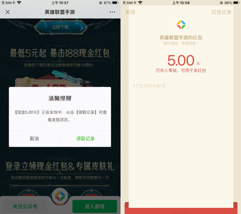 设置昵称->返回页面领取红包(老用户登陆游戏抽2元红包 非必中)