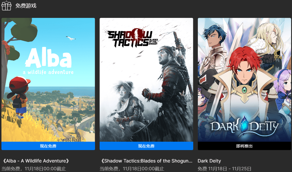 领取地址:https://store.epicgames.com/zh-CN/p/shadow-tactics