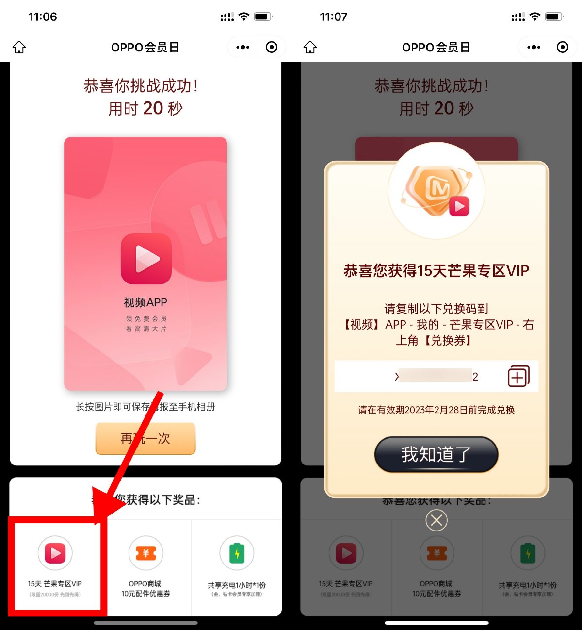 微信打开地址->完成拼图领15天芒果TV会员兑换码->