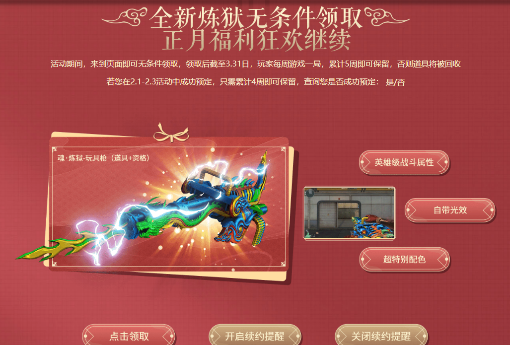 玩家每周游戏一局,累计5周即可保留,否则道具将被回收